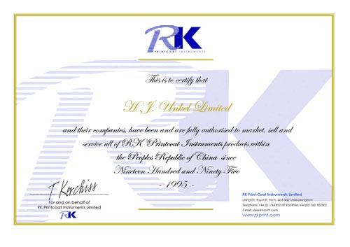 英國(guó)RK 涂布打樣機(jī)代理證書(shū)